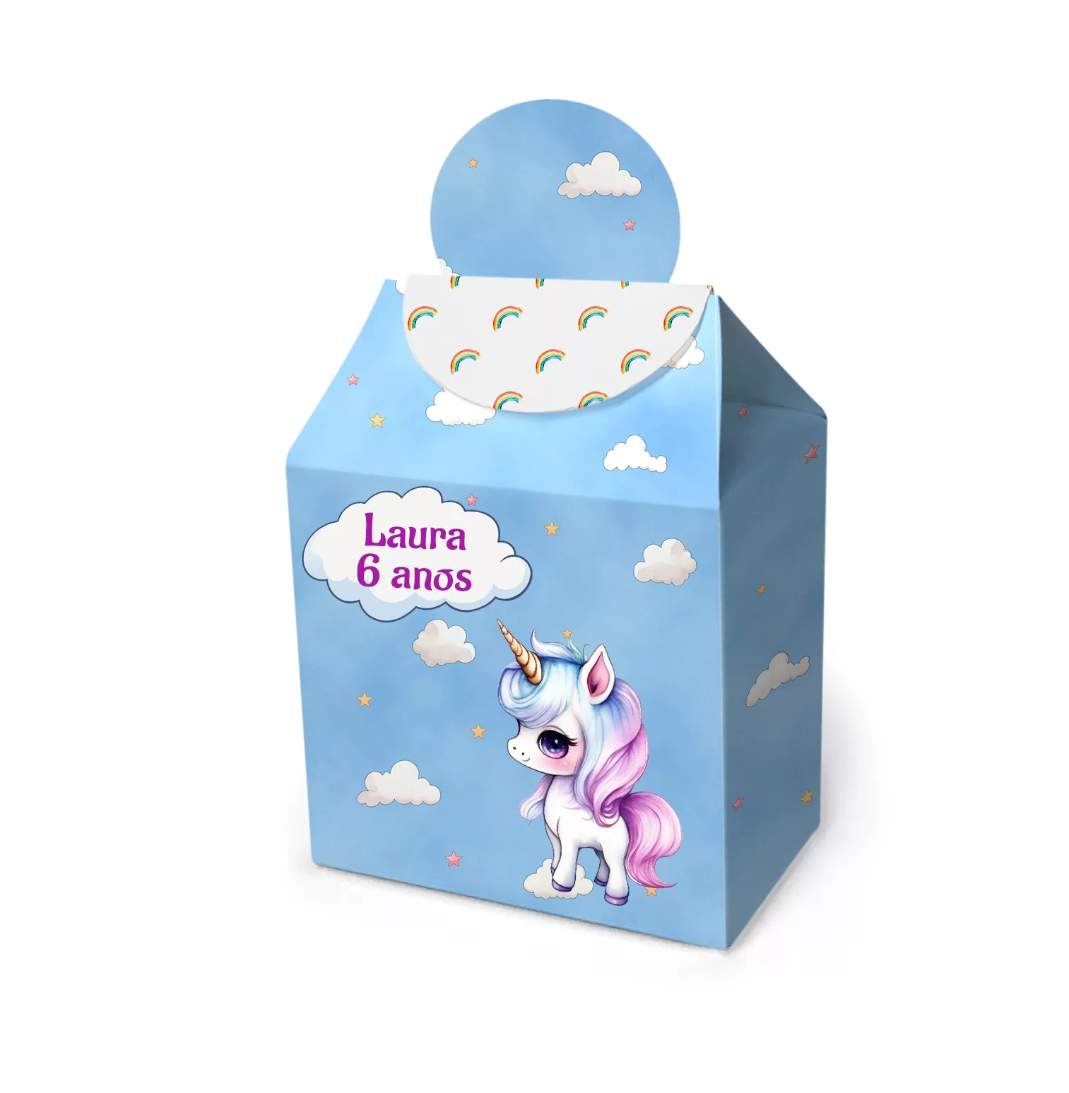 As caixas personalizadas podem ser utilizadas como centro de mesa, decoração de mesa, lembrancinhas personalizadas para serem dadas aos convidados. Como o tema é Unicórnio, e vamos disponibilizar um drive com imagens para baixar grátis, use cores alegres, arco-íris são bem vindos.